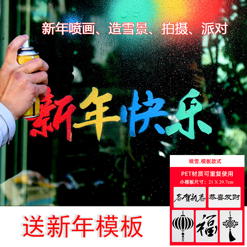 耶诞喷雪彩色喷罐模板玻璃喷雾泡沫喷雪花装 饰喷彩带彩条白雪耶诞