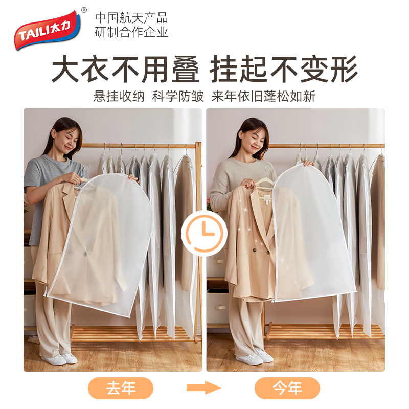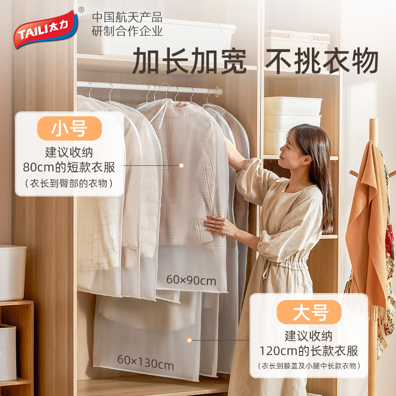 太力衣服防尘罩挂衣袋挂式 家用衣物防尘袋大衣收纳袋羽绒服防尘罩