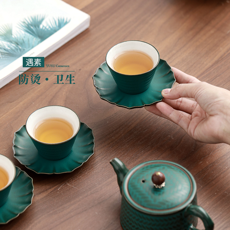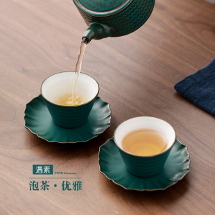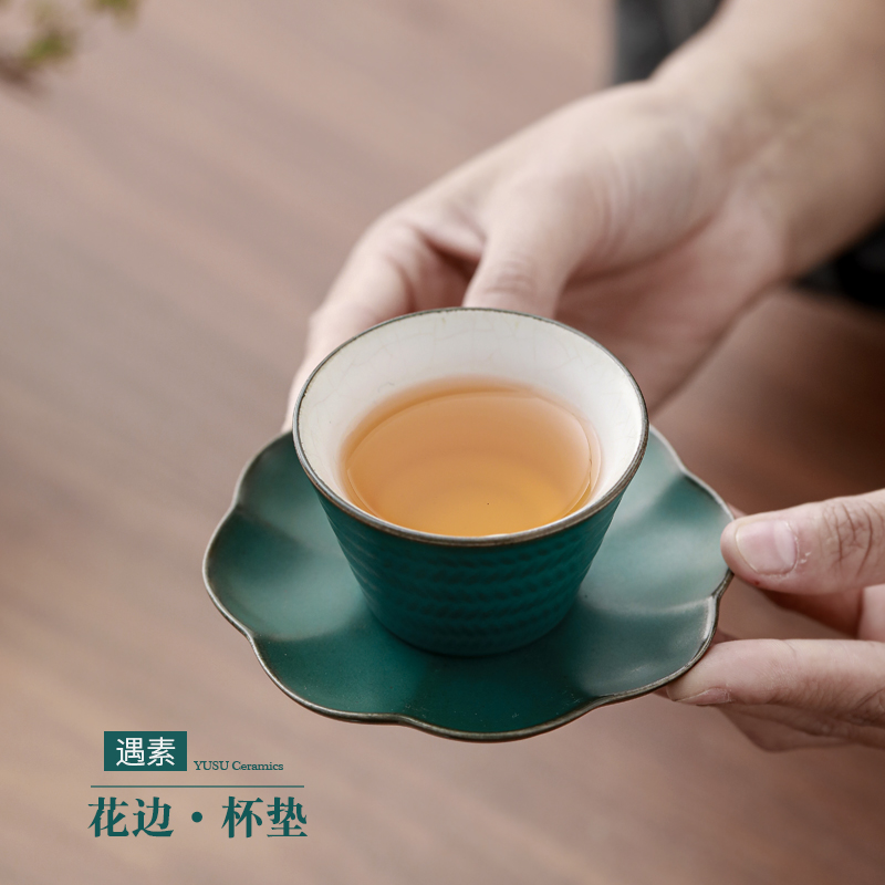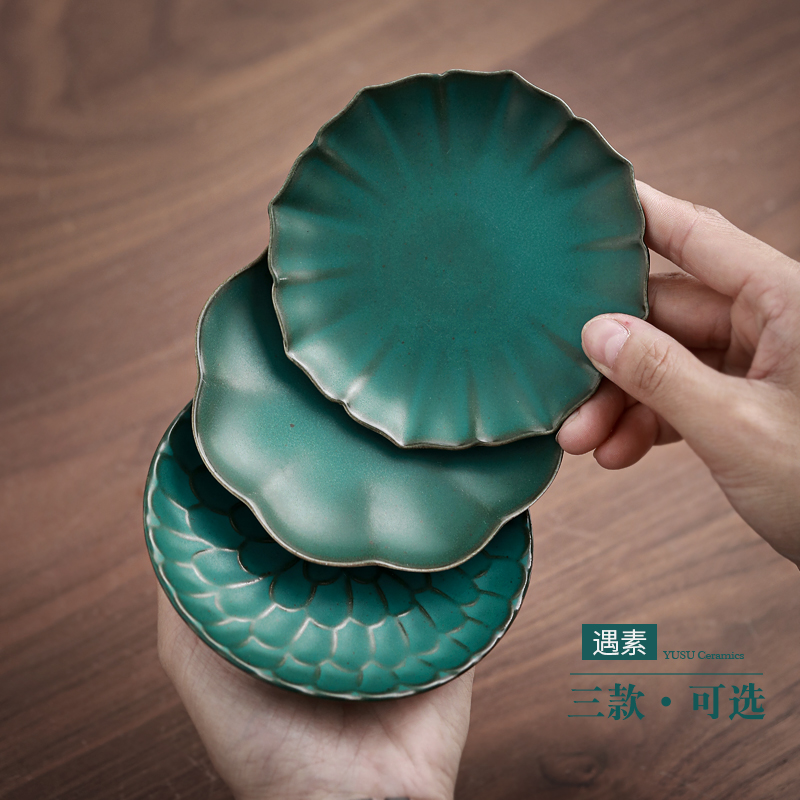 遇素中式 窑变杯垫陶瓷圆形隔热垫墨绿家用茶垫功夫茶具品茗杯茶托