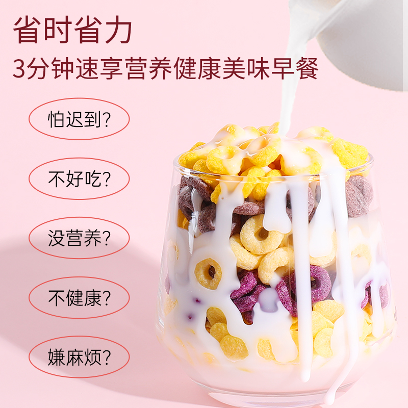 谷物圈燕麦片拌酸奶早餐代餐食品泡牛奶紫薯玉米脆减低0脂无蔗糖