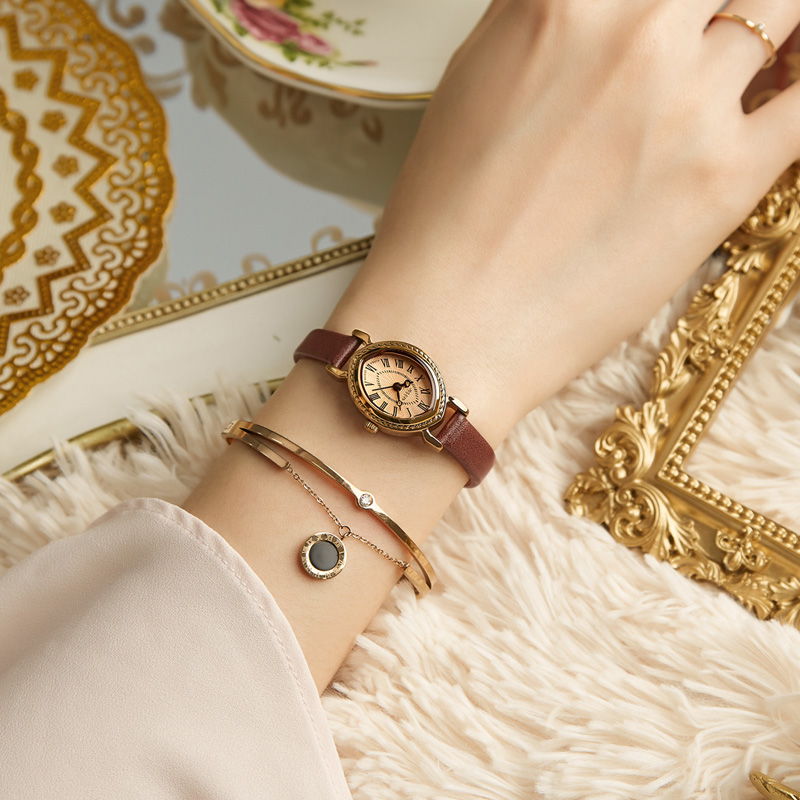 聚利时手表女官网欧美复古宫廷小表盘橄榄壳石英女表567