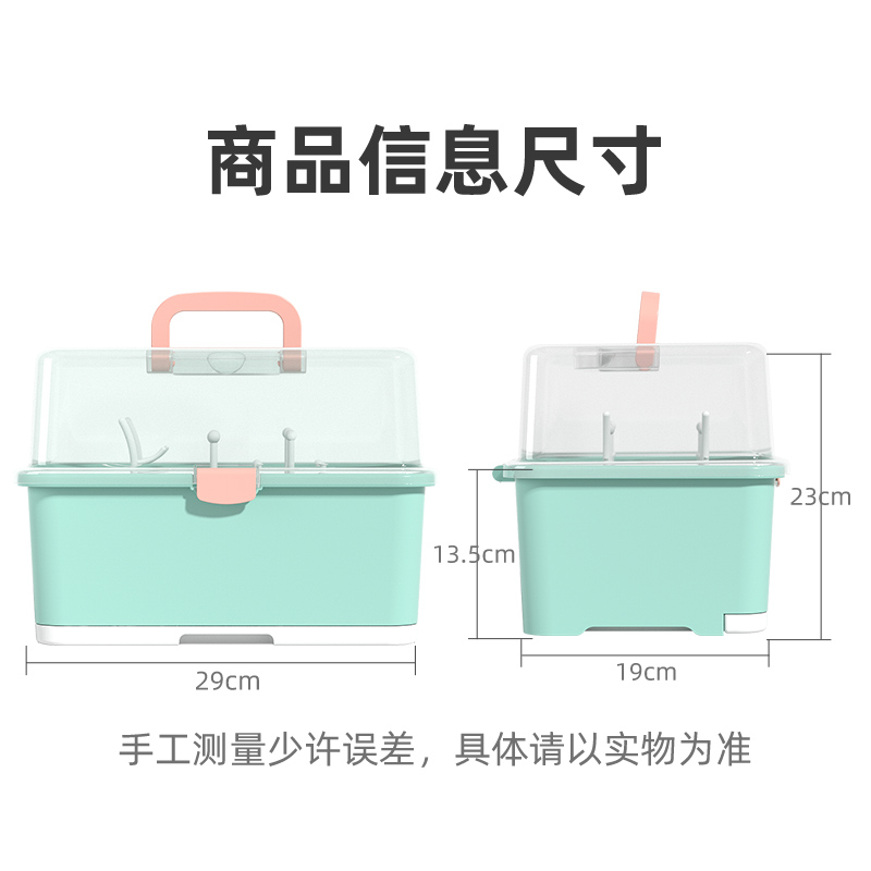 婴儿奶瓶收纳箱便携式 大号宝宝餐具储存盒奶瓶沥水带盖防尘晾干架