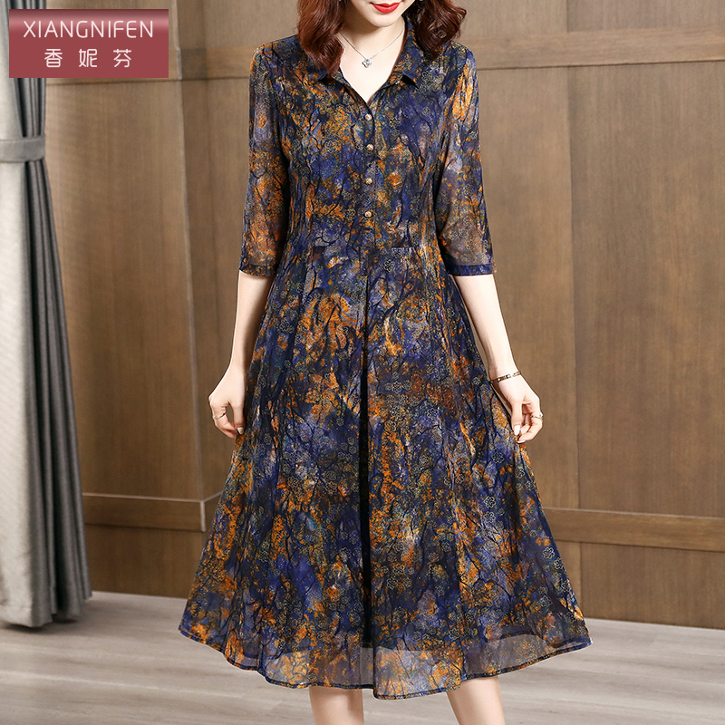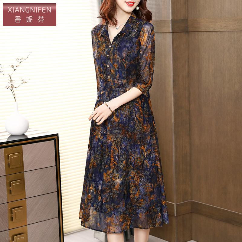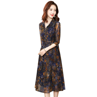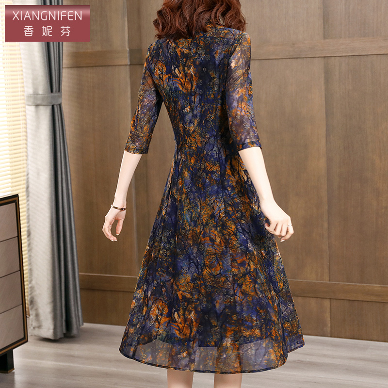 预售洋气桑蚕丝真丝丝绒连衣裙女2025年秋季 蕾丝拼接中长裙子 新款