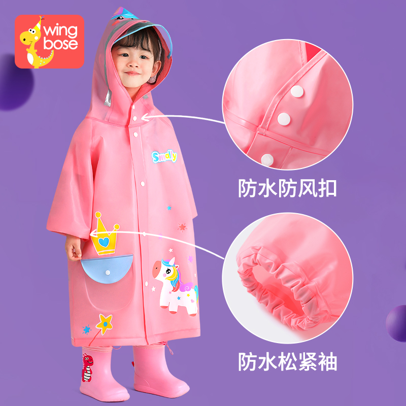 牧萌儿童雨衣男童女孩全身防水幼儿园小学生上学专用带书包位雨披