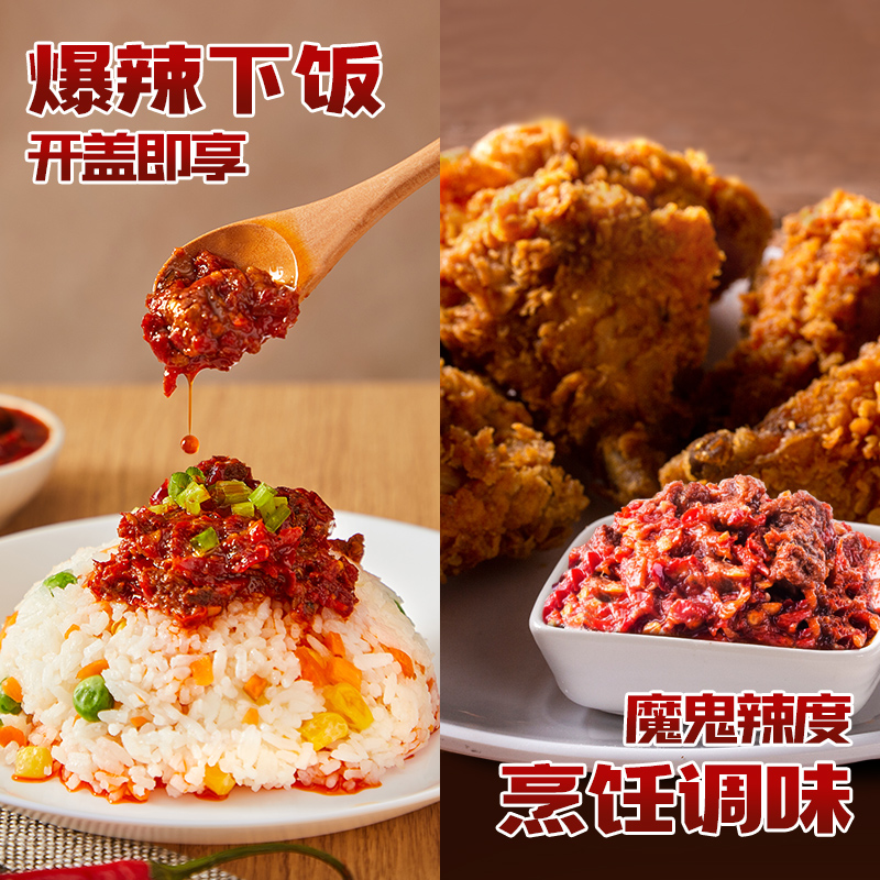 虎邦魔鬼牛肉辣椒酱210g下饭菜变态特爆辣椒酱鲜椒拌饭面香辣酱料