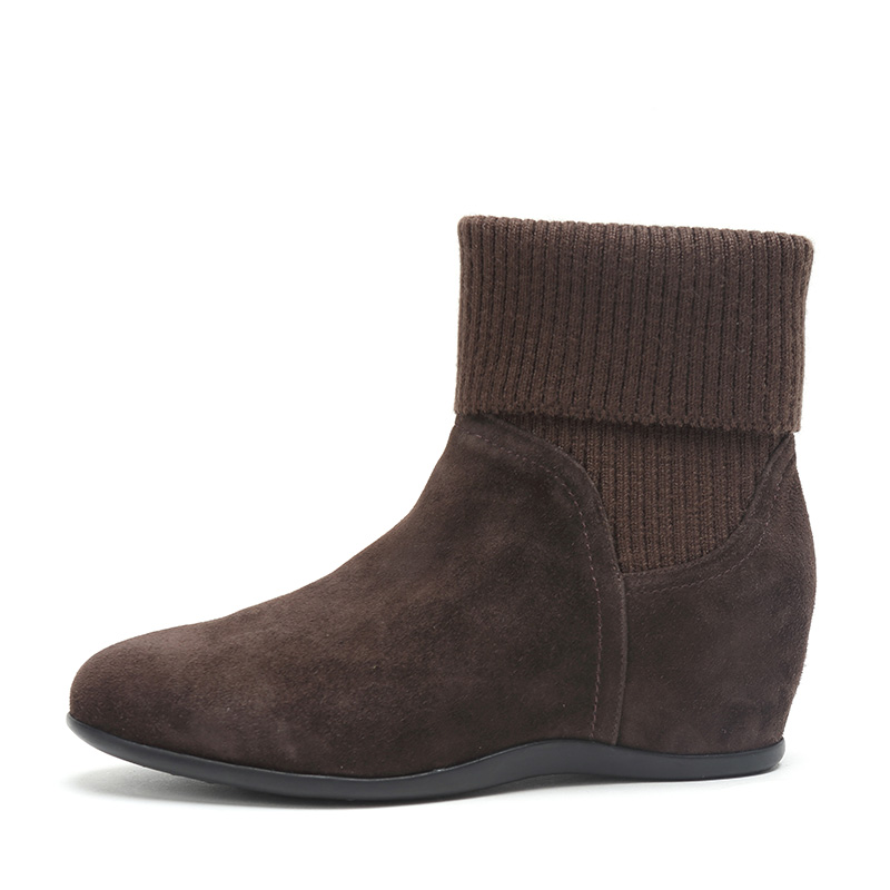 DG毛线靴女短靴秋冬新款 加绒保暖真皮短筒靴子 坡跟内增高棉鞋