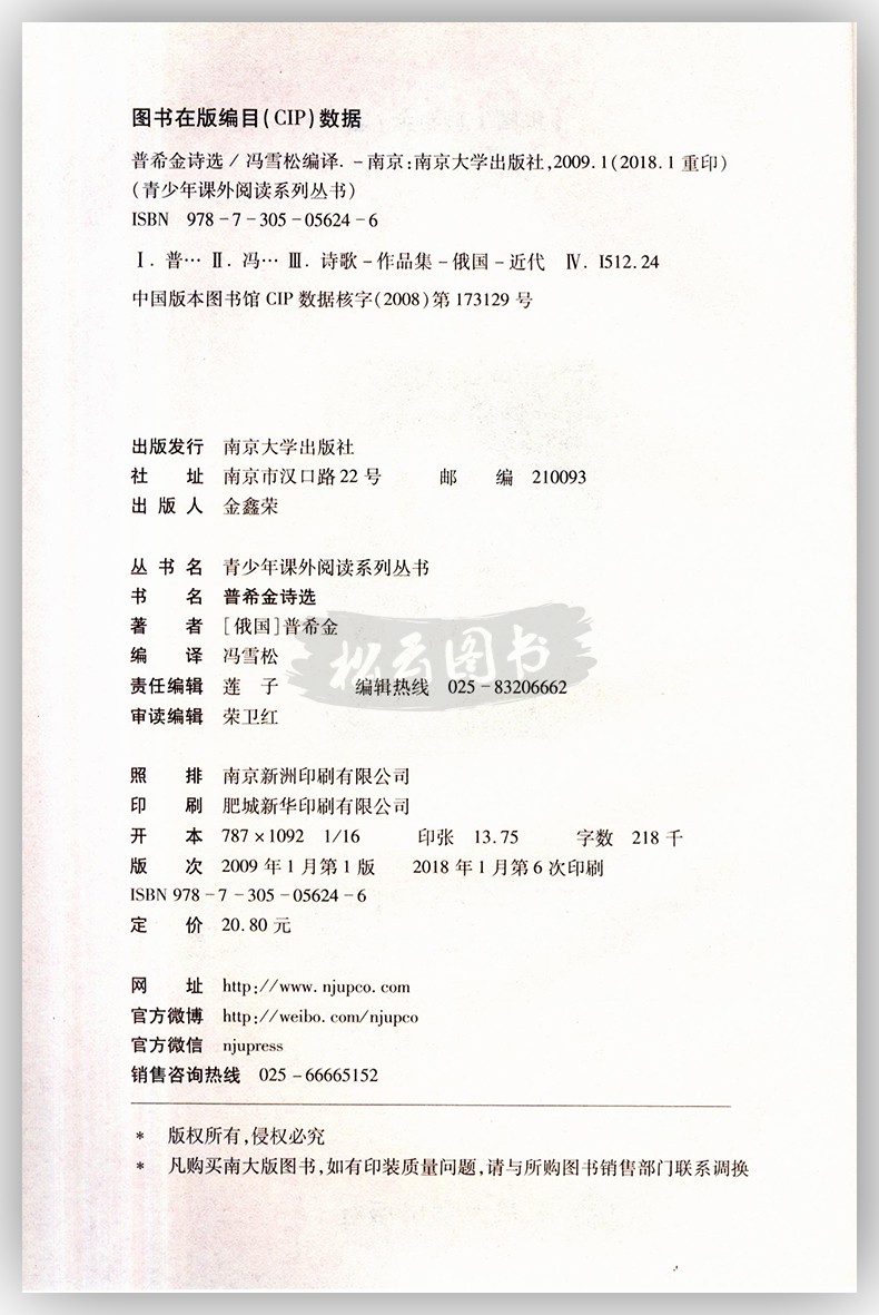 普希金诗选 语文新课标读本青少年课外阅读系列丛书 全国中小学图书馆 配备核心书目 贾平凹主编 室 语文新课标必读