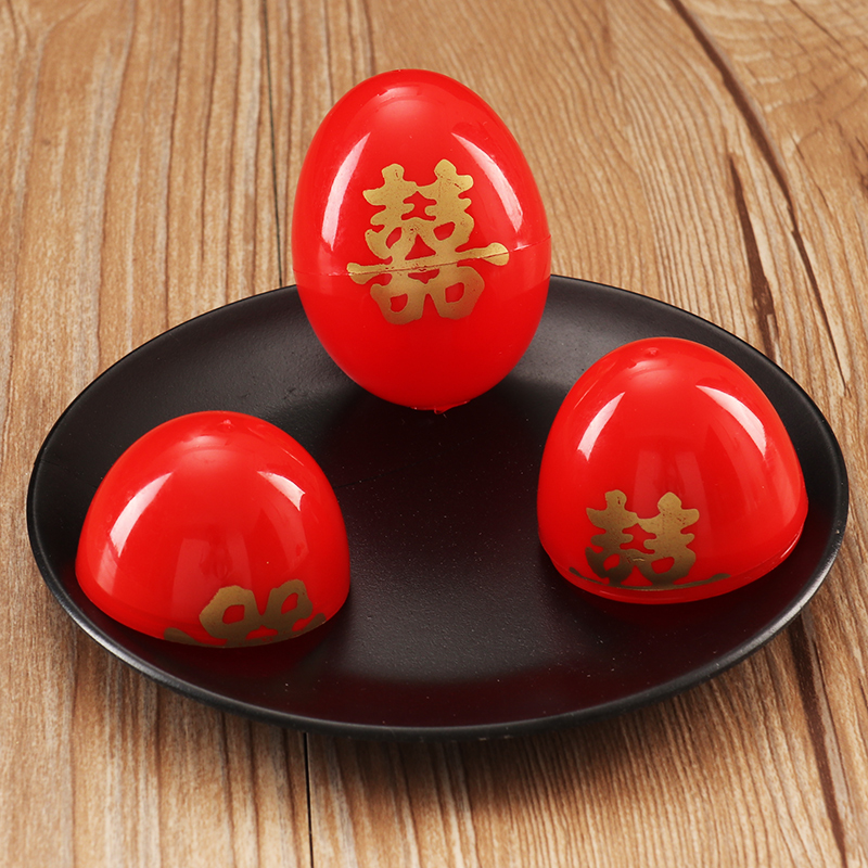 婚庆用品结婚红蛋壳婚礼喜蛋壳宝宝满月喜糖盒塑料红色双喜鸡蛋壳