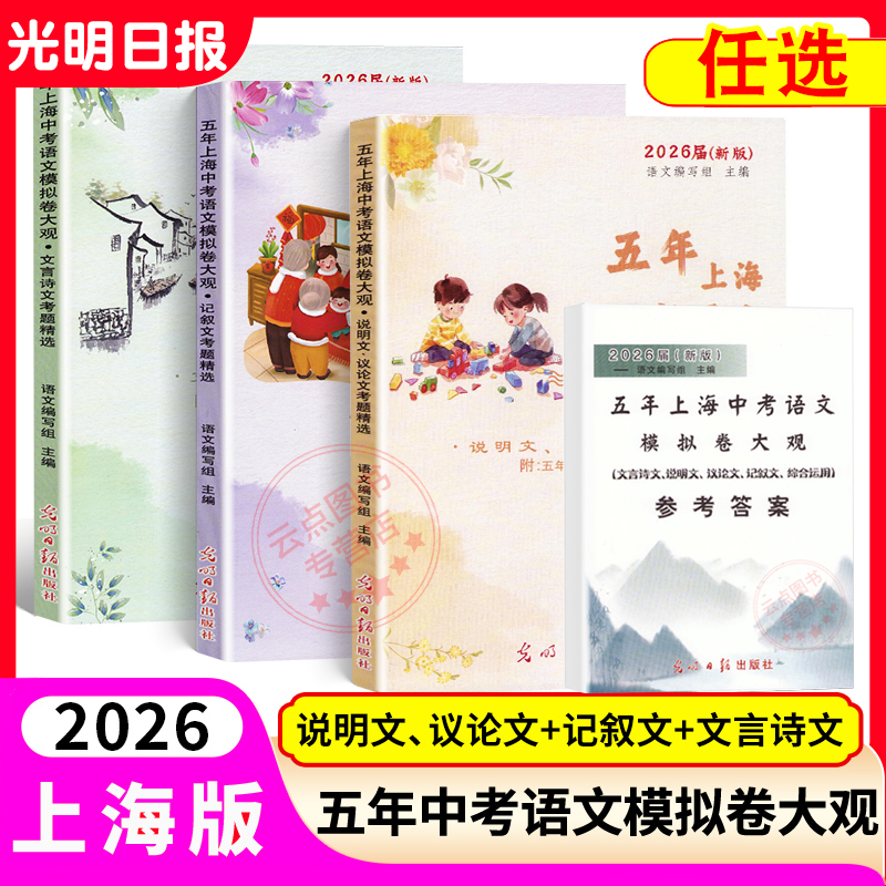 三本套装 任选2026届新版 含答案 文言诗文记叙文说明文议论文考题精选 光明日报上海25一模二模试题 五年上海中考语文模拟卷大观