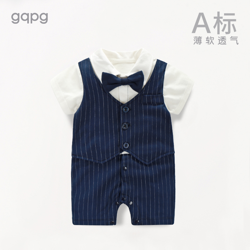 婴儿满月服百天周岁衣服百日宴百岁拍照礼服男宝宝夏装 连体衣 薄款