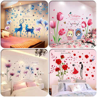 自粘墙纸贴纸女孩卧室温馨贴画情侣房间浪漫墙贴装 饰客厅创意贴花