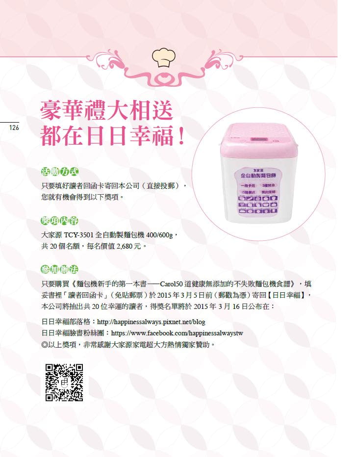 胡涓涓 不失败面包机食谱 Carol di一本书:Carol50道健康无添加 日日幸福 面包机新手 预售