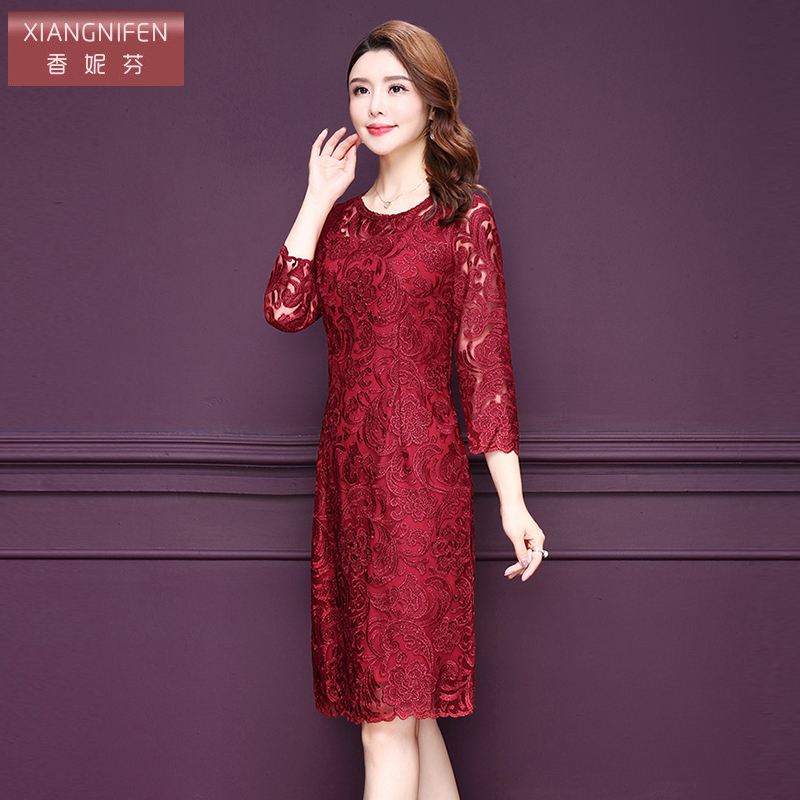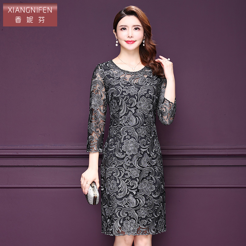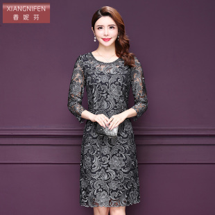 裙洋气女装 香妮芬2025秋季 中年妈妈连衣裙高贵气质中长款 长袖 新款