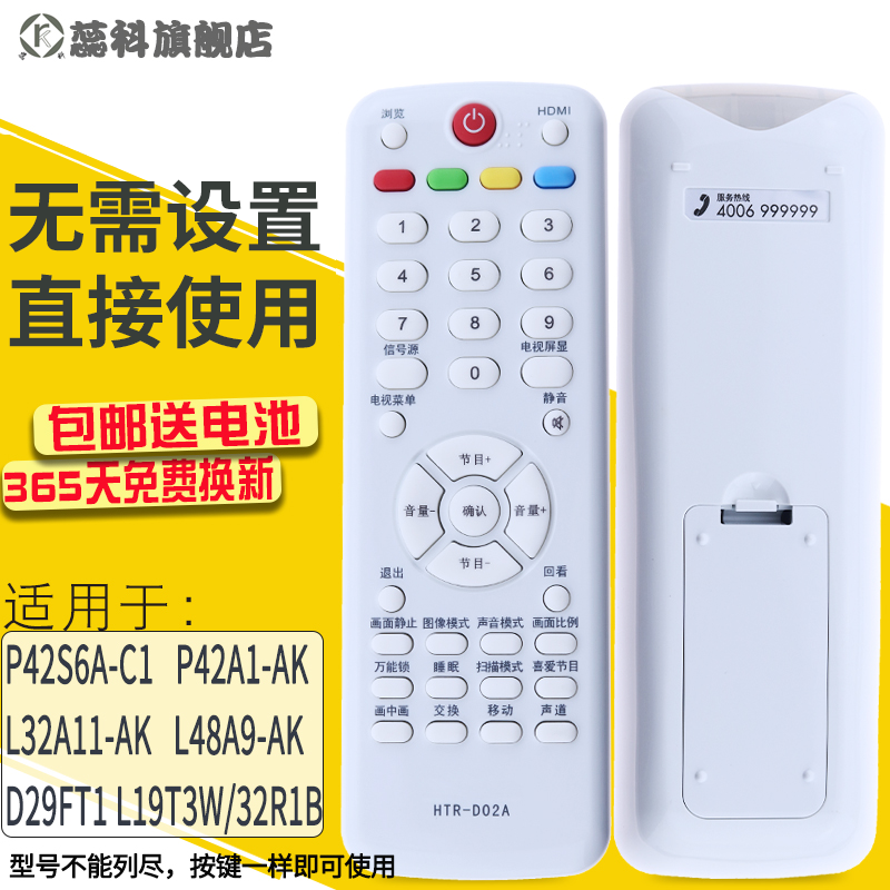 L19T3W 蕊科适用于 D29FT1 D02A L32R1B 海尔液晶电视遥控器HTR