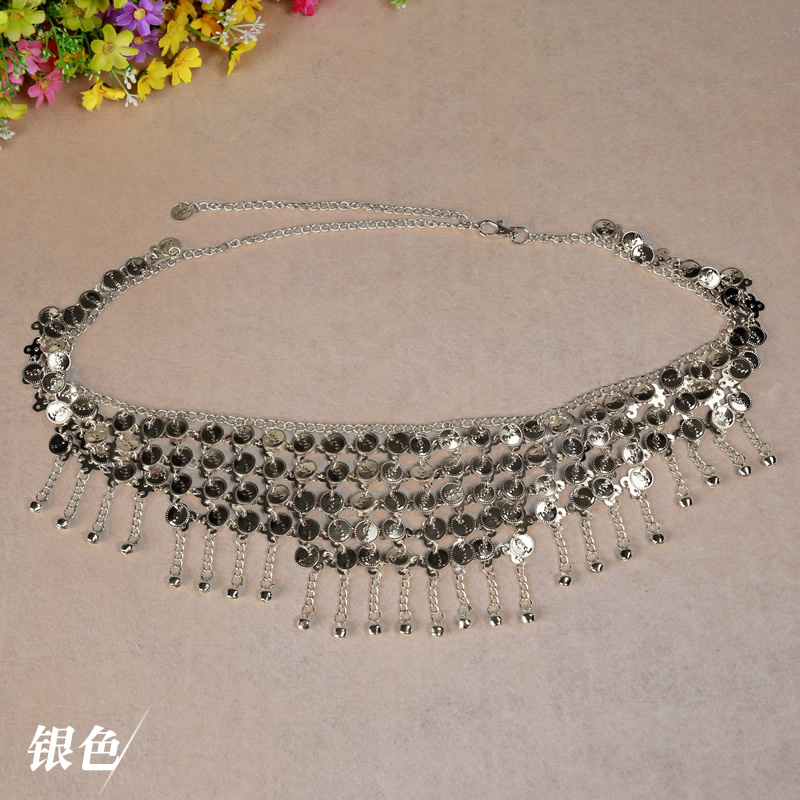 舞娘新款 肚皮舞腰链臀巾广场舞排舞半圆三角腰封埃及亮片金币腰带