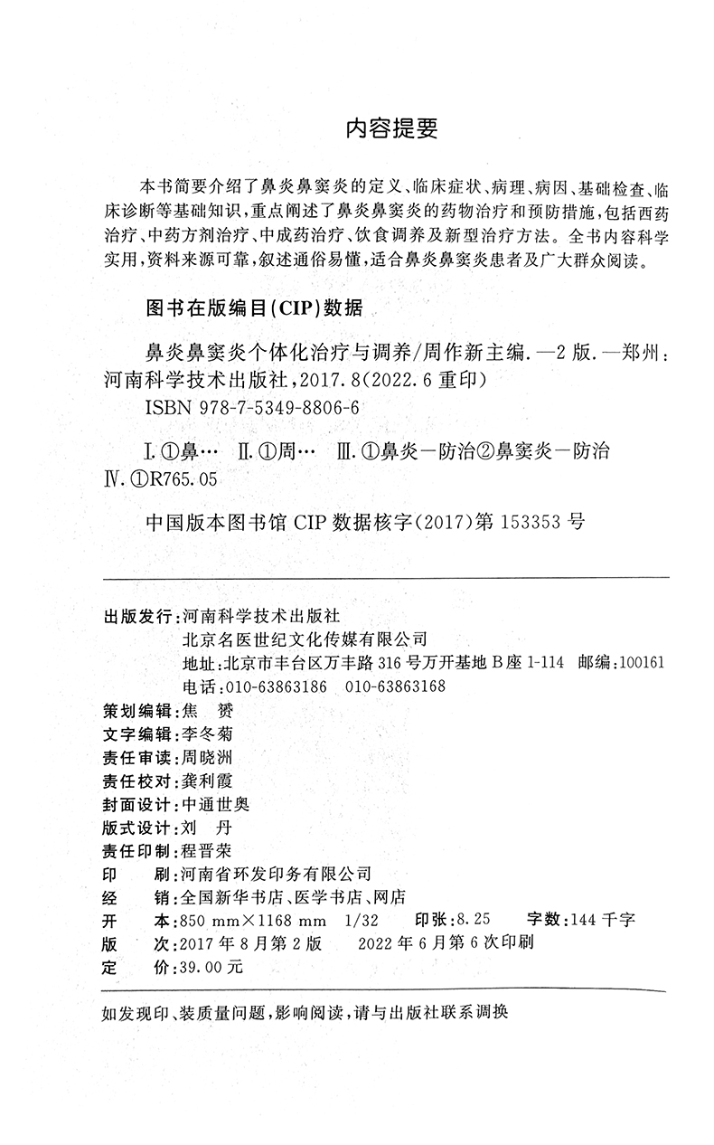 第2版 鼻炎预防临床诊断治疗技术书籍 过敏性慢性鼻炎治疗 鼻炎安全合理用药 9787534988066 鼻炎防治 鼻炎鼻窦炎个体化治疗与调养