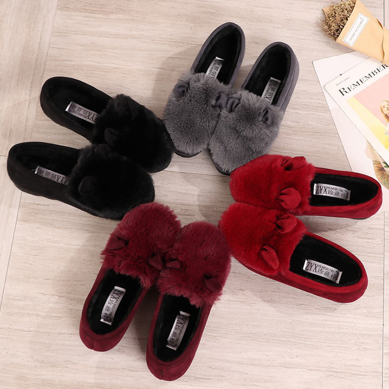 兔耳朵毛毛鞋 时尚 厚底加绒保暖豆豆鞋 潮女棉鞋 女 秋冬新款 瓢鞋 韩版