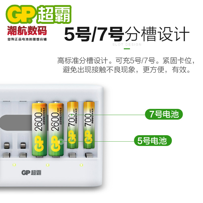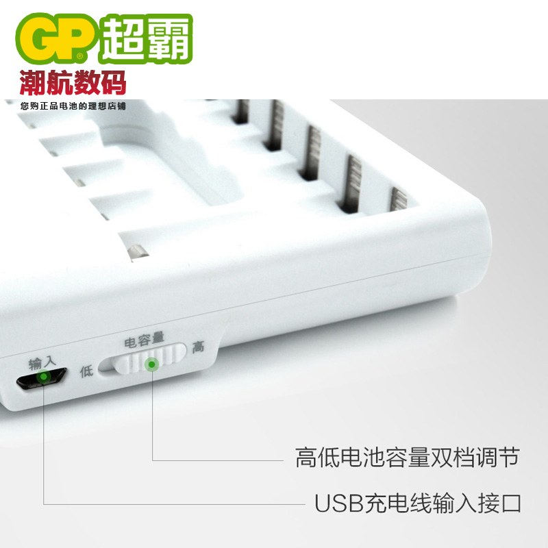 gp超霸快速智能USB接口8槽充电器镍氢5号电池7号电池8位充电器1.2v五号七号电池充电器 智能充满断电变灯正品