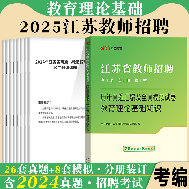 江苏省教师招聘考试资料中公2025年教育理论基础知识教材真题模拟卷中小学语文数学学科教师考编制教招题库南京苏州无锡徐州常州市