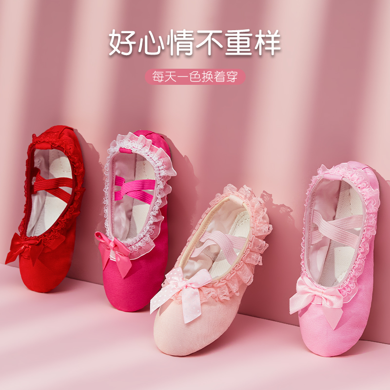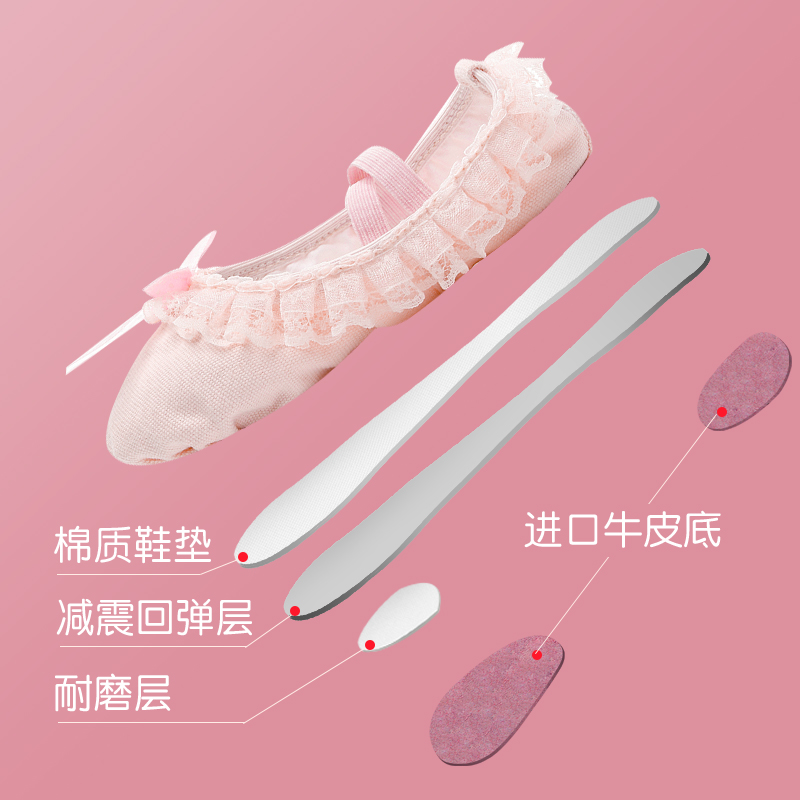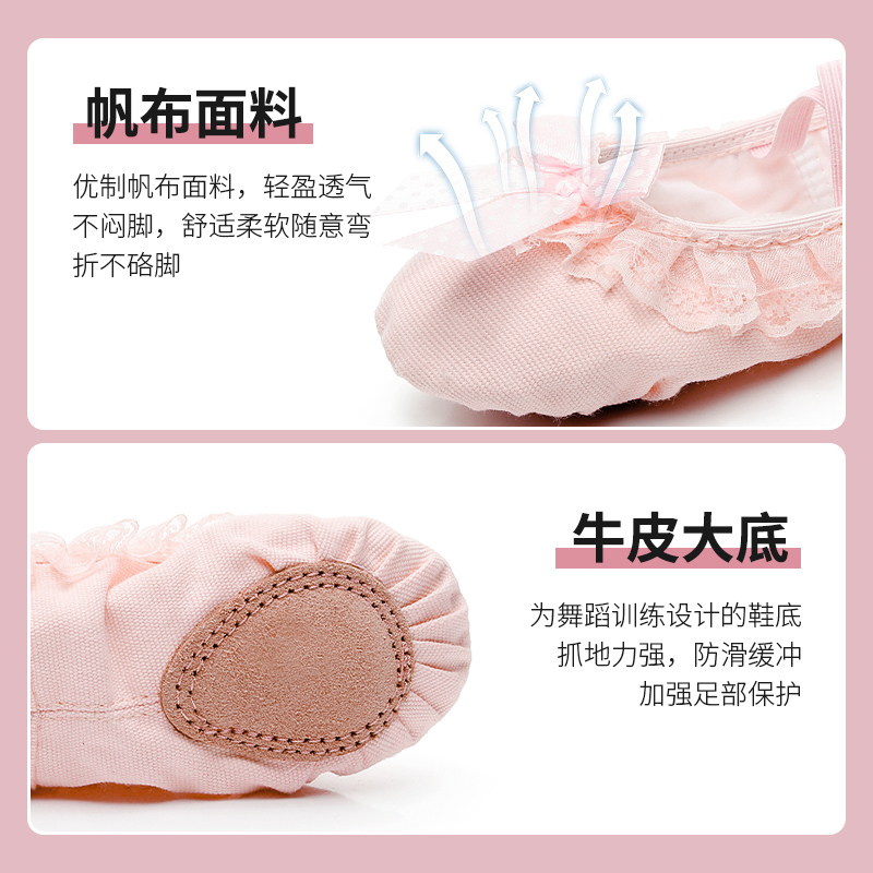 儿童舞蹈鞋 女软底中国练功女童猫爪跳舞专用女孩宝宝粉色花边芭蕾