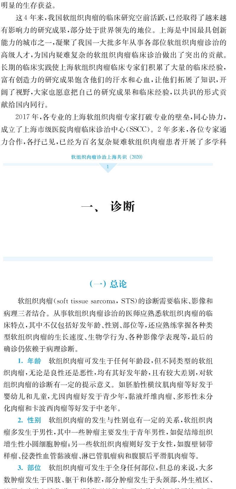 软组织肉瘤诊治上海共识2020软组织肉瘤主要诊断方式 社 上海市级医院肉瘤临床诊治中心编戴尅戎顾问9787547846797上海科学技术出版