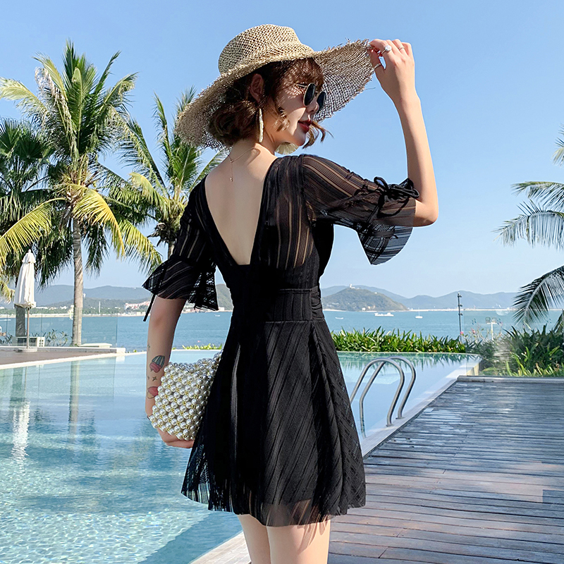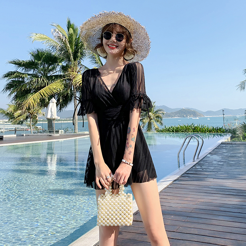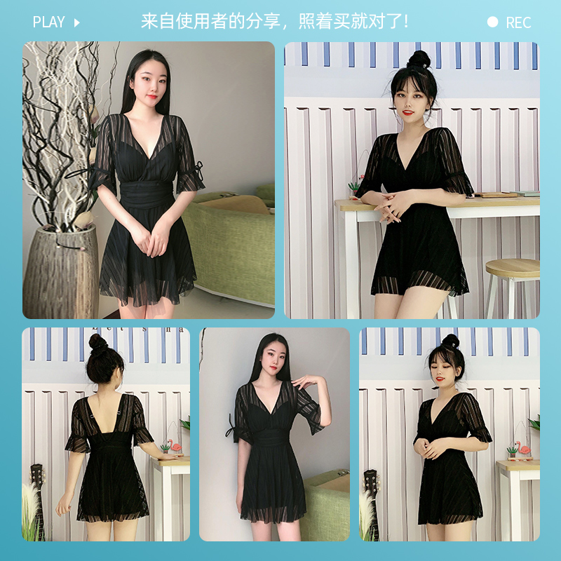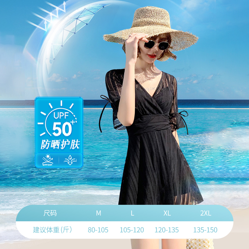 宜肤泳衣女保守2025新款 连体遮肚显瘦韩国ins胖mm冬天泡温泉 大码
