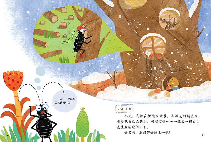 绘本故事书 中国少年儿童出版 社 我 8岁图画故事睡前故事绘本精装 日记 动物昆虫日记 日记系列—天牛
