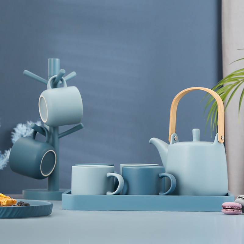 陶瓷杯带把耐热简约冷水具客厅喝水杯家用泡茶杯子六只装 茶杯套装