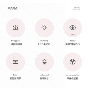 浪鲸卫浴卫生间浴室镜挂墙式 带灯高清防雾智能镜化妆镜圆镜发光
