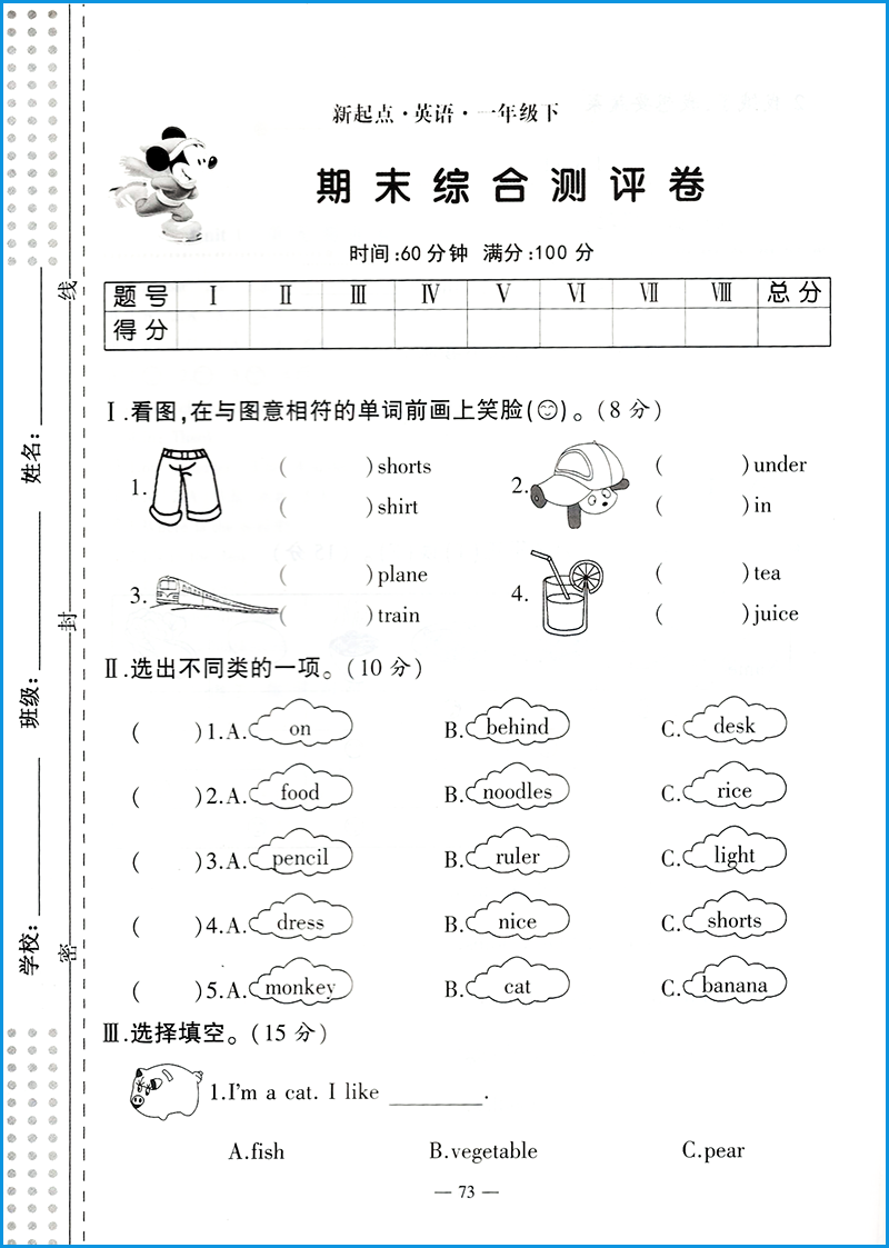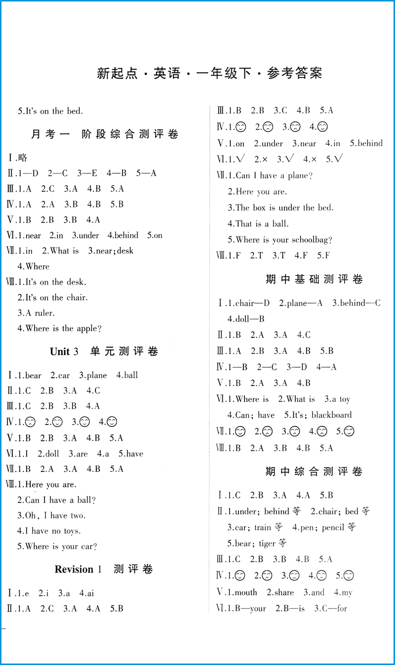 单元 新版 一起点 新起点XQD 月考专项期中期末测试卷英语1年级 优优虎金考系列黄冈海淀全程培优测试卷1一年级下册英语人教版