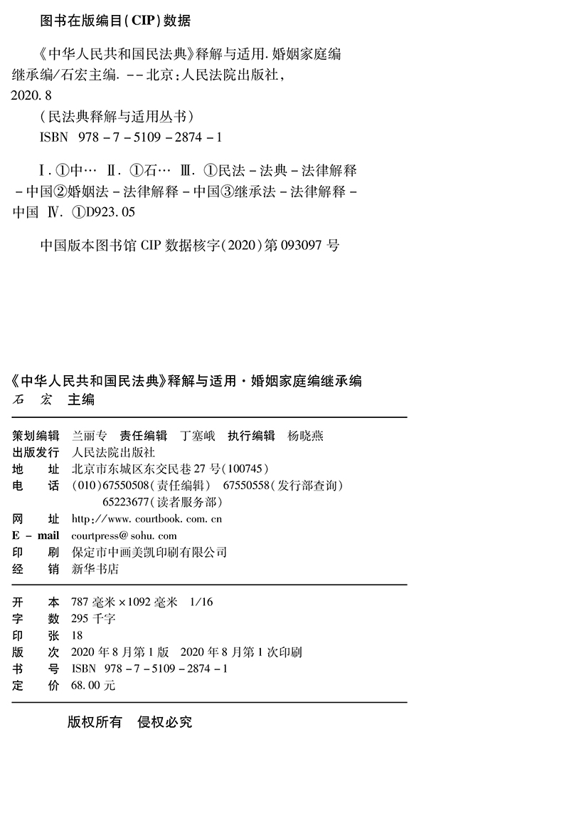 民法典2021年版 中华人民共和国民法典释解与适用 婚姻家庭编继承编 正版 石宏 新版 全国人大法工委 中国民法典解读释义 现货