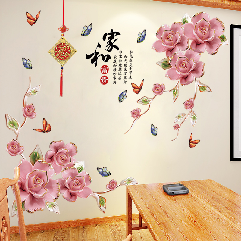 3d立体花瓶墙贴画中国风温馨客厅卧室电视背景墙床头装 饰贴纸自粘