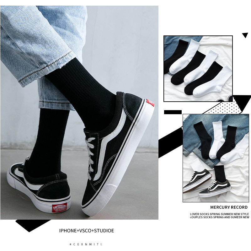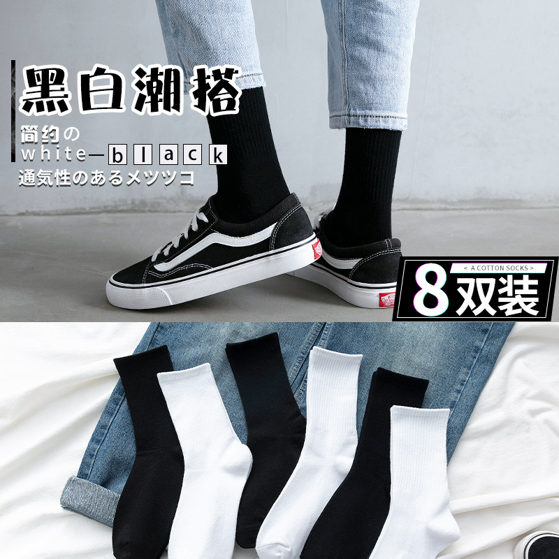 防臭吸汗长袜ins潮男袜 纯棉黑白纯色长筒秋冬季 袜子男士 中筒秋季