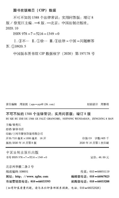 实用问答版 增订8版 徐宪江 正版 社 1388个法律常识 中国法制出版 9787521613490 不可不知