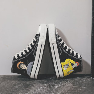 百搭学生休闲运动小众厚底板鞋 新款 子女2025年秋季 环球黑色帆布鞋