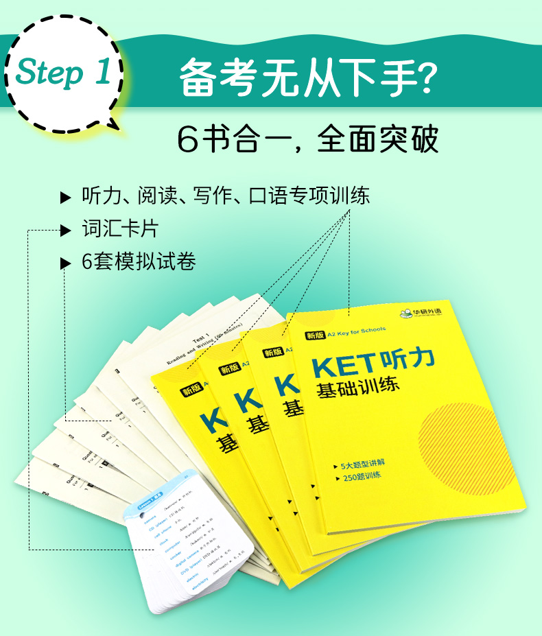 华研外语2024剑桥国际少儿英语ket基础训练六合一ket考试教材单词阅读理解真题写作听力口语法模拟试卷Key综合教程五级核心词汇书