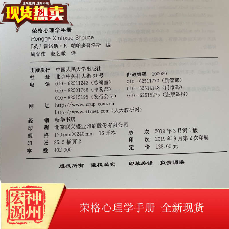 Renos 社 现货 9787300264721 中国人民大学出版 荣格心理学手册雷诺斯K.帕帕多普洛斯 心理学理论与研究 正版 Papadop心理学
