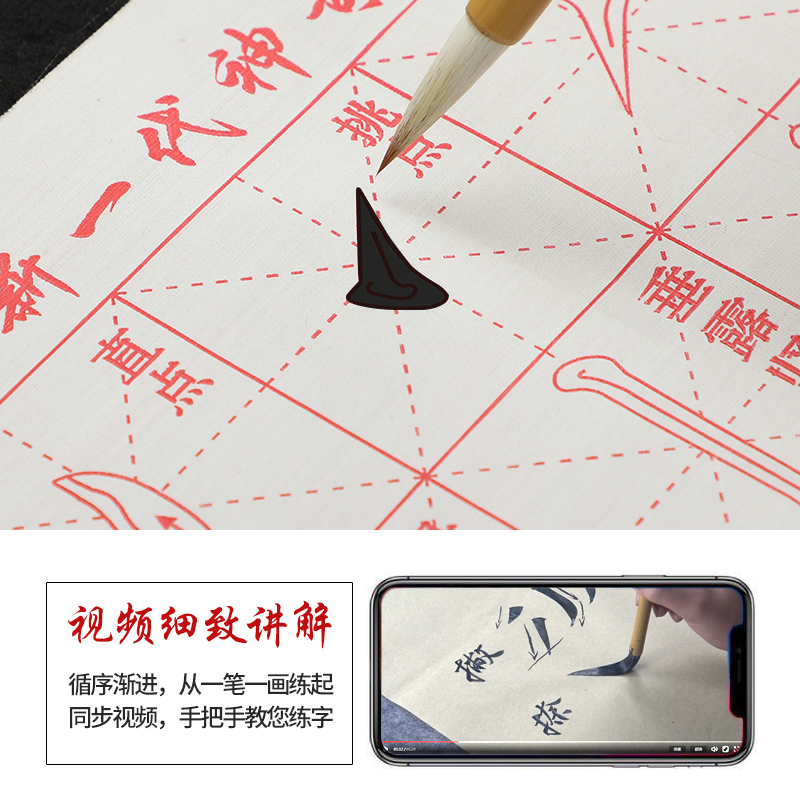 毛笔初学书法套装 初学者入门专用狼毫兼毫儿童小学生水写布笔墨纸砚练字全套成人专业文房四宝收纳工具六品堂