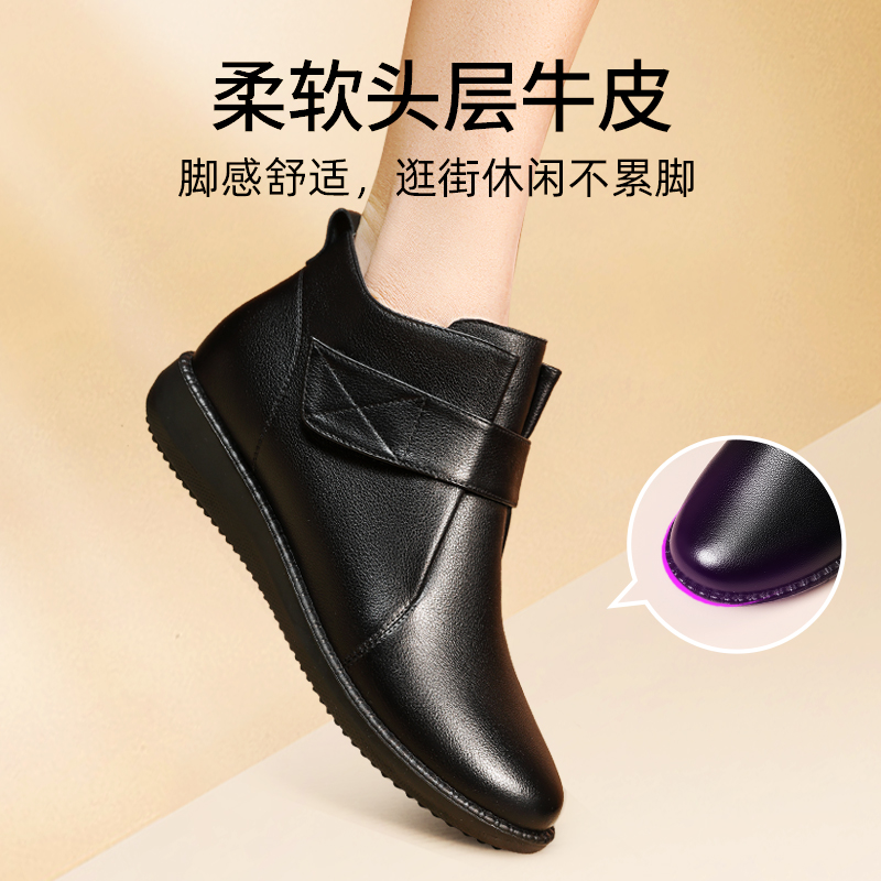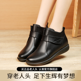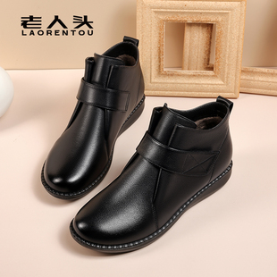 中老年人奶奶防滑软底短靴 女加绒真皮皮鞋 老人头冬季 保暖妈妈棉鞋