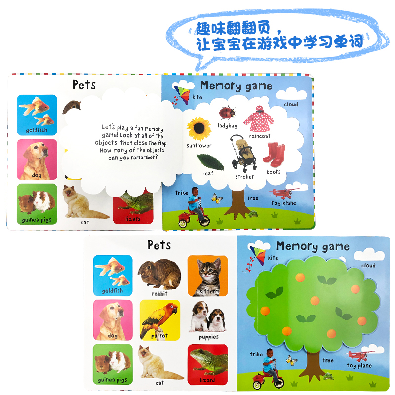 一百个单词启蒙100词Lift 100 the First Words大开本纸板翻翻书英语图解字典宝宝识字辅导故事图画书first100words Flap 英文原版