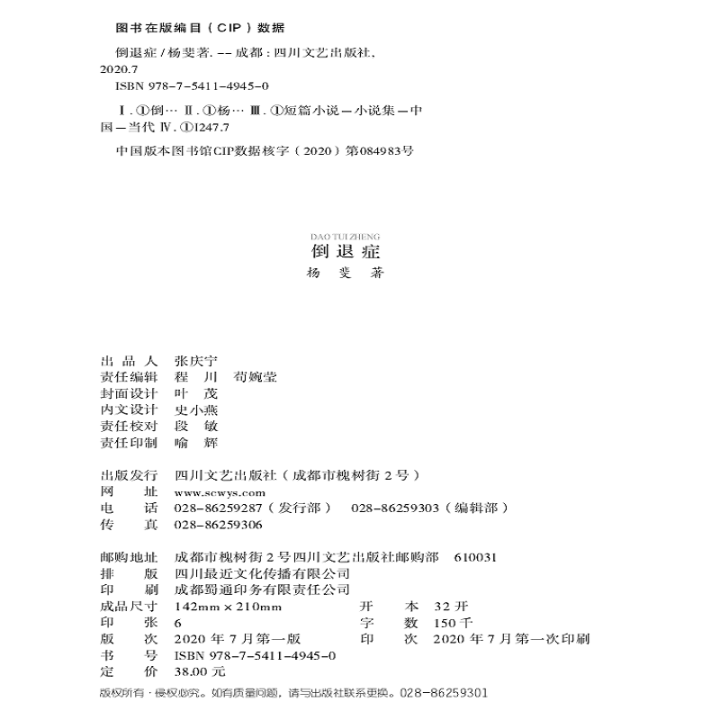 现代 当代文学文学 正版 倒退症 四川文艺出版 著 图书籍 社 杨斐