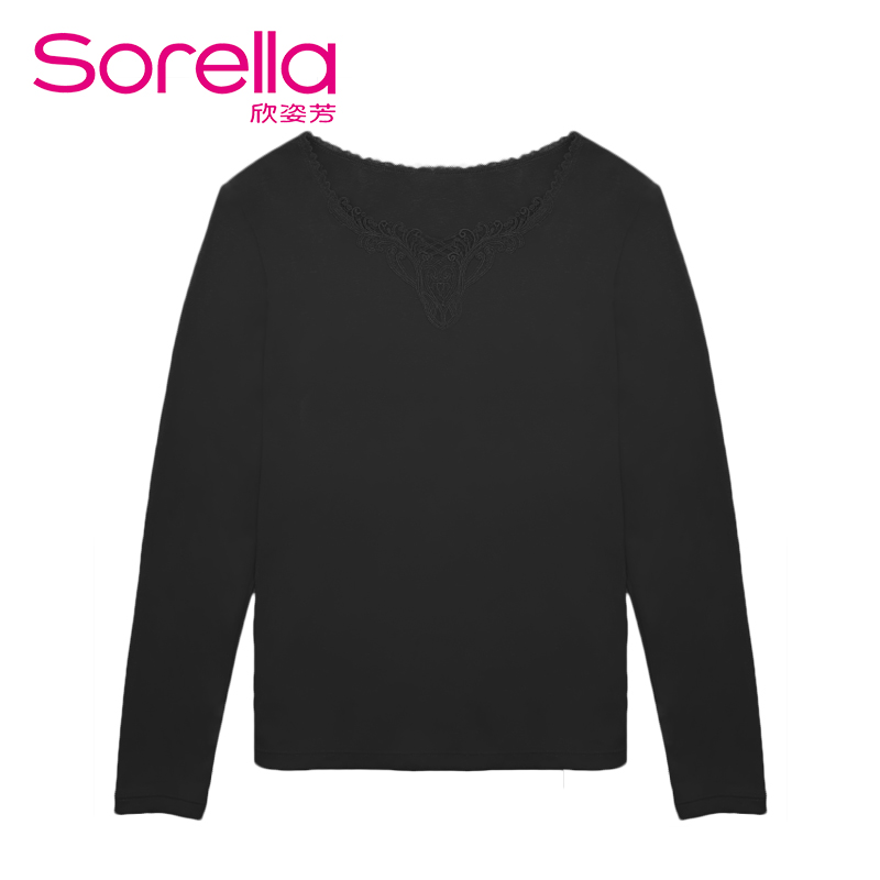 欣姿芳刺绣V领长袖 保暖内衣舒适优雅气质打底女保暖衣秋衣9771