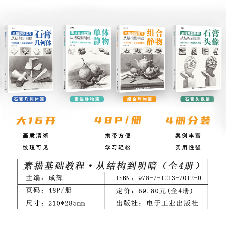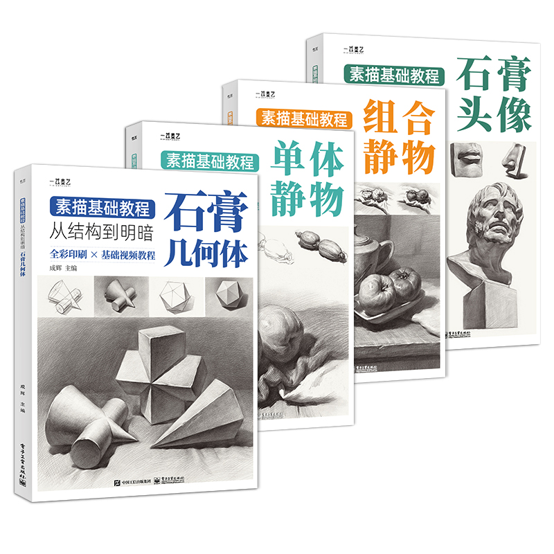 素描书入门教材 素描基础教程全套4册素描石膏几何体人物头像静物素描书初学者画画自学零基础铅笔画绘画手绘美术书籍临摹画册书籍