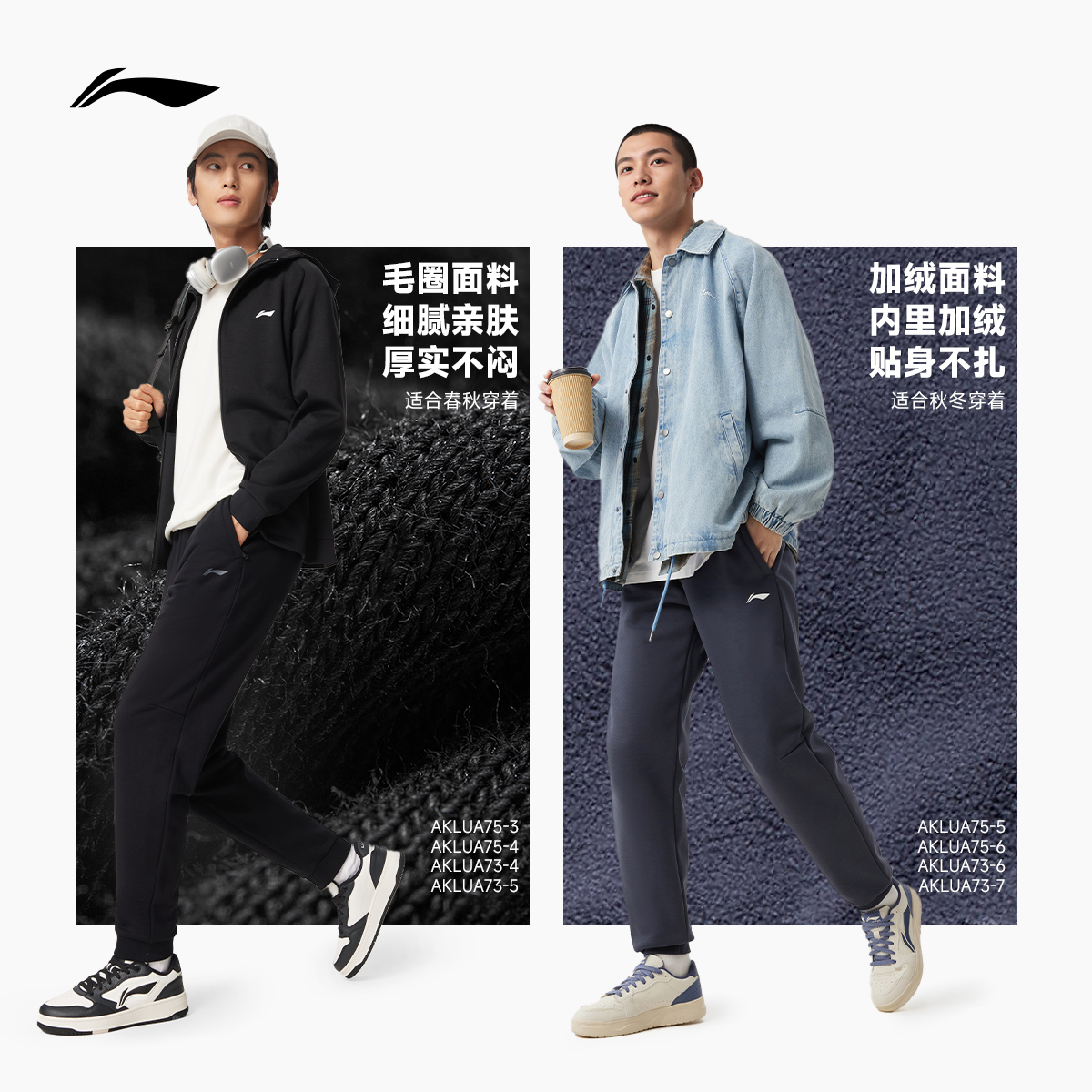 拉链口袋加绒针织黑色运动裤 李宁卫裤 健身跑步长裤 宽松休闲裤 男士