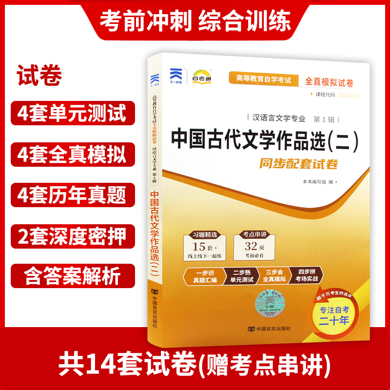 0533中国古代文学作品选 二 自考通试卷 附自学考试历年真题 赠考点串讲小抄掌中宝00533 全真模拟试卷 朗朗图书 考前冲刺