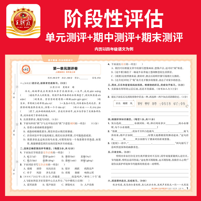 2025上册小学四年级王朝霞德才兼备作业创新设计语文同步练习册部编人教版 试卷北师苏教数学剑桥英语同步作文阅读专项尖子生课课通