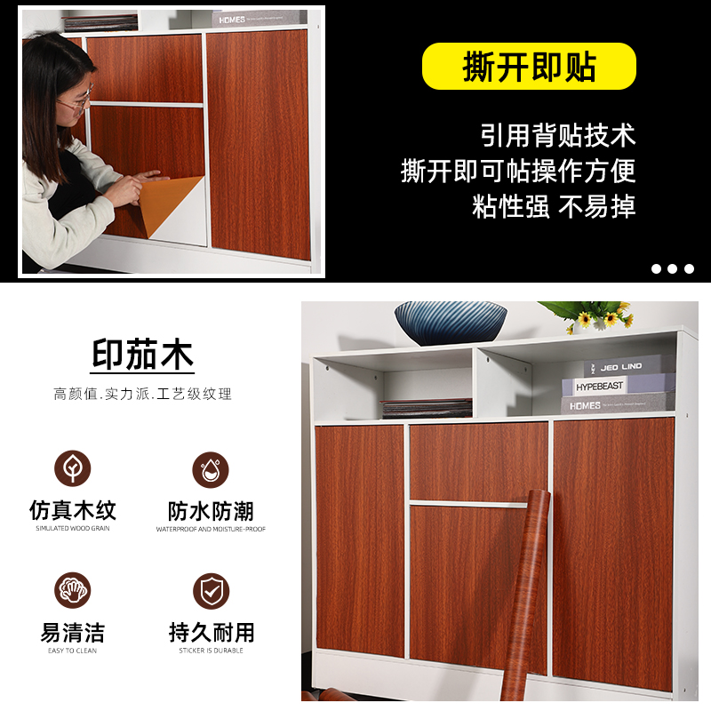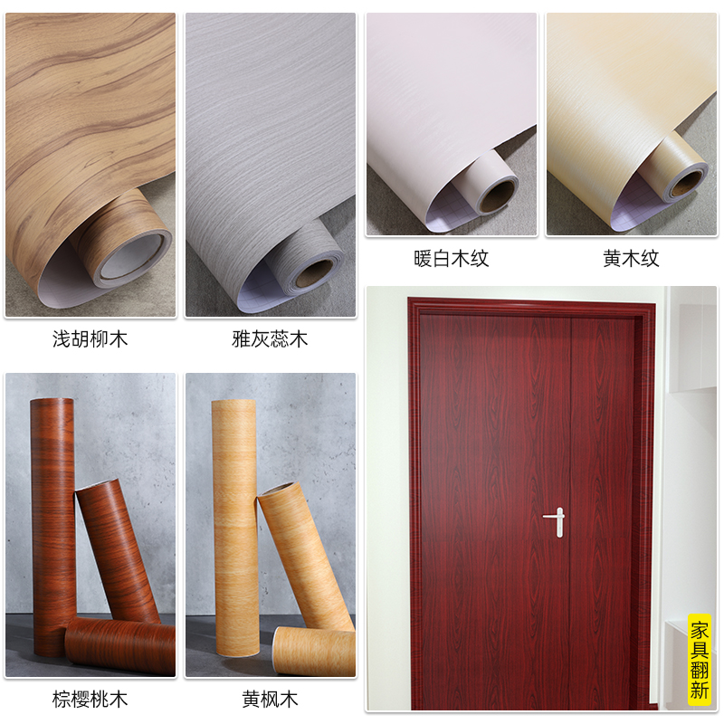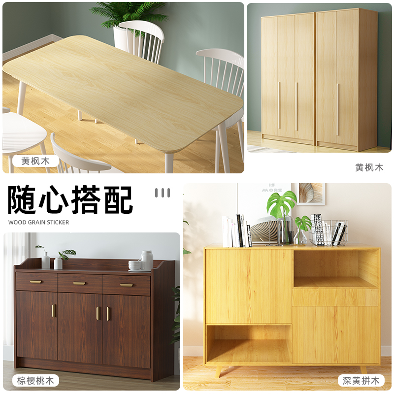 木纹贴纸柜子桌面翻新家具贴膜仿木衣柜门贴皮木纹纸装 修防水墙纸