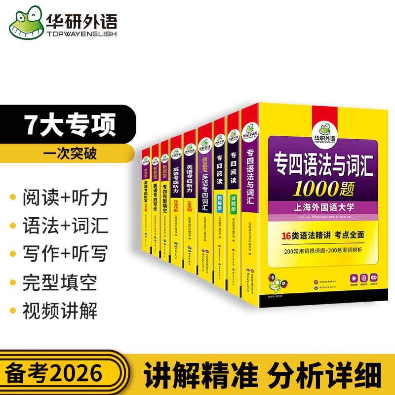 华研外语 专四专项训练全套备考2026英语专四语法与词汇1000题词汇书8000听力阅读180篇单词完形完型填空写作文真题预测试卷2026