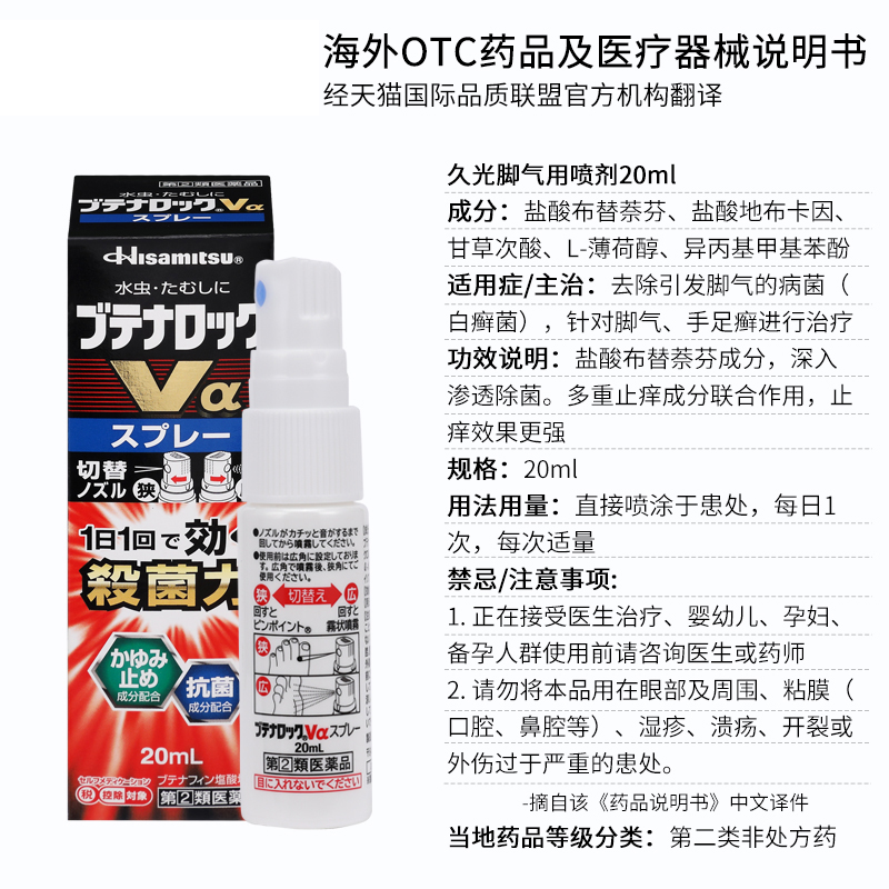 日本久光制药去脚气喷雾代购 止痒脱皮杀菌股藓水虫治疗Va20ml 正品