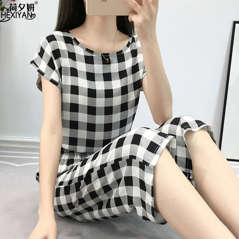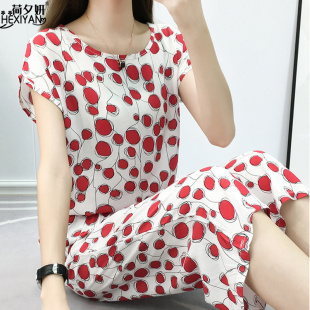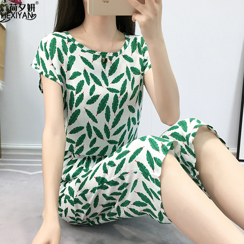 两件套大码 宽松短袖 家居服可出门休闲洋气 绵绸套装 棉绸睡衣女夏季